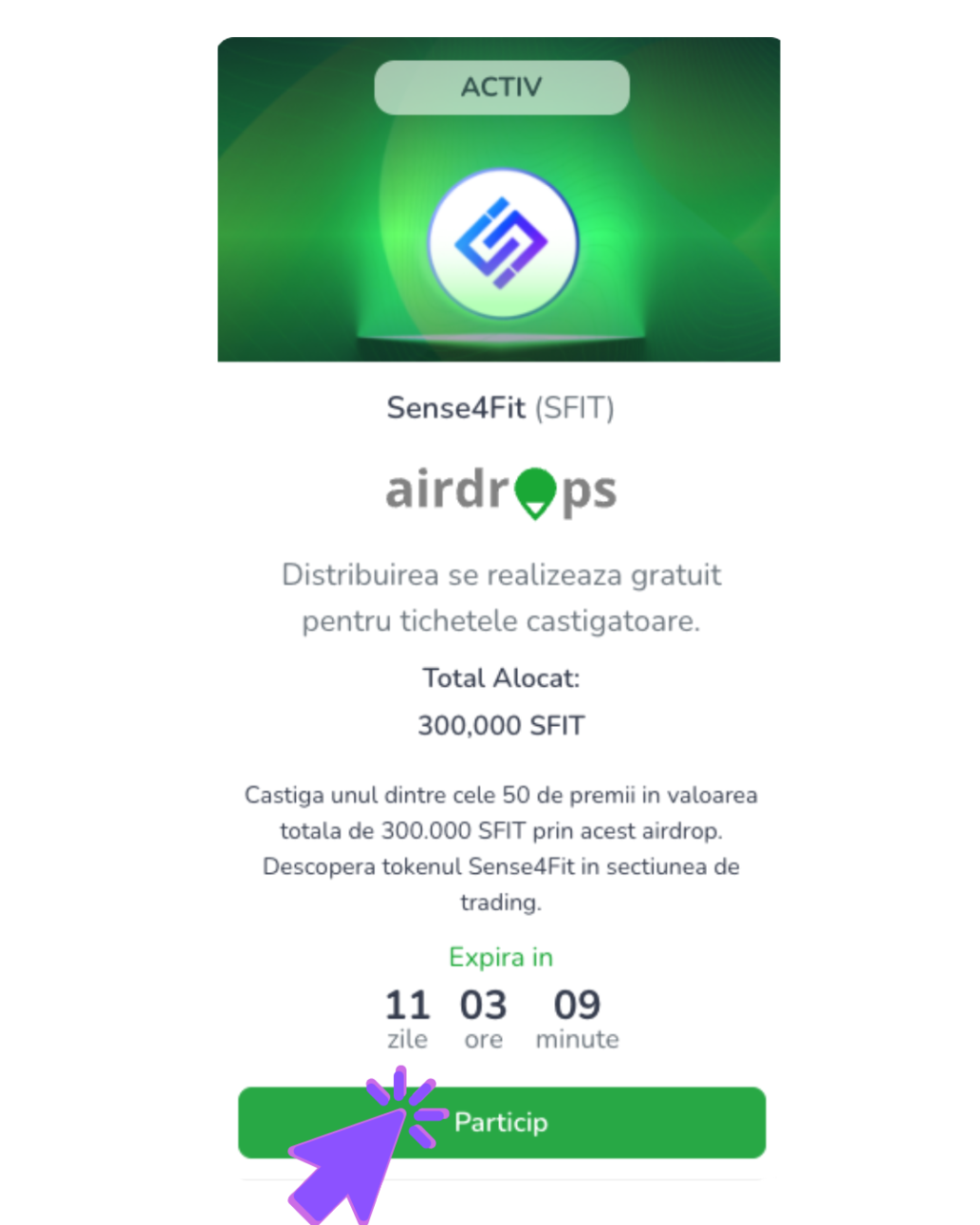 Deschiderea unui Airdrop Exclusiv: Sense4FIT (SFIT) Distribuie 300.000 de Tokenuri in 50 de Premii.