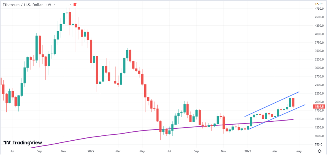 ETH a avut o scadere de peste 10% in saptamana recent incheiata, pretul revenind sub nivelul de 1.900 USD.