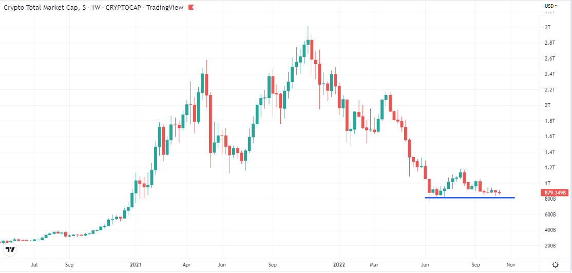 Capitalizarea Totala a Activelor Digitale se situeaza putin sub nivelul de 900 miliarde USD, trecand prin a cincea saptamana consecutiva fara miscari importante in piata crypto.