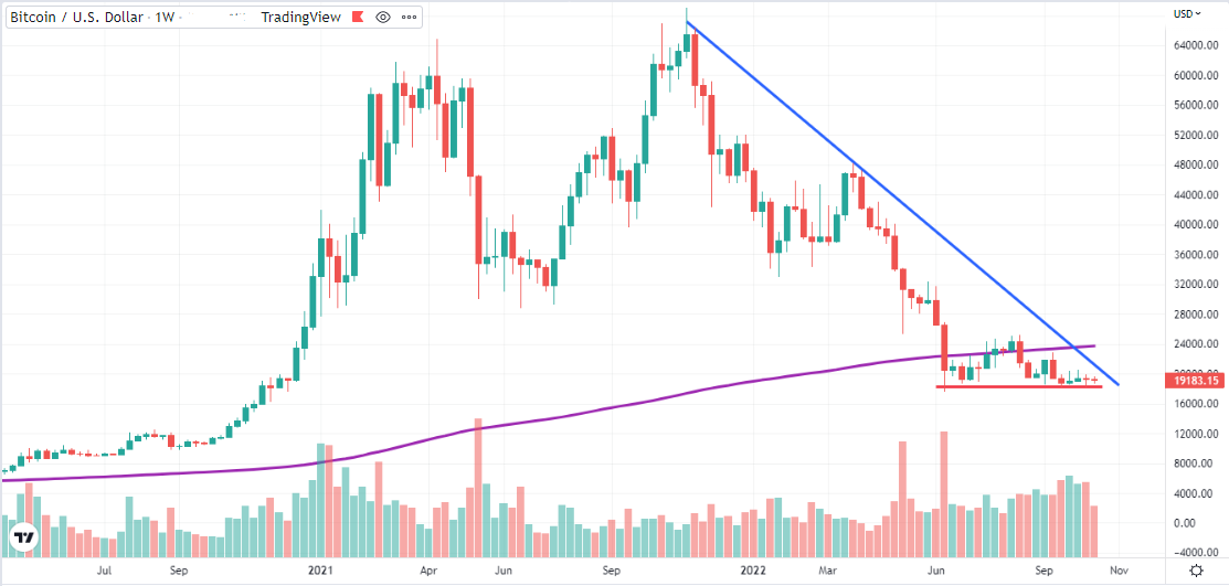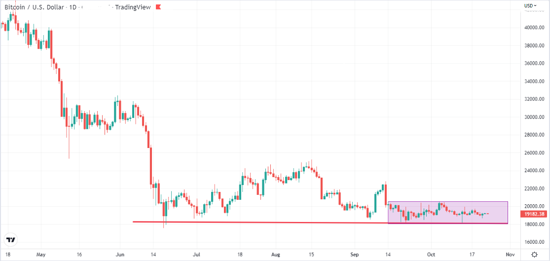 Bitcoin a incheiat a 5-a saptamana consecutiva in care pretul a oscilat in jurul nivelului de 19.000 USD, fara a inregistra miscari importante.