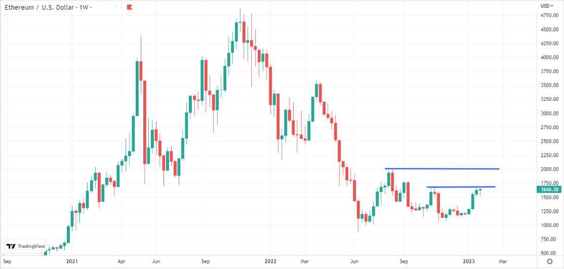 In prima parte a saptamanii, tokenul retelei Ethereum a fost respins in jos din primul nivel de rezistenta pe trend ascendent, la 1.650 USD, ca, mai apoi, pretul sa revina si sa re-testeze acest nivel.