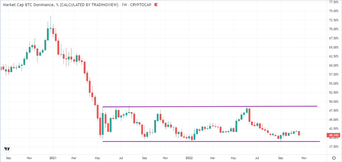 Dominanta BTC in totalul de piata a activelor digitale a scazut catre zona de 40%, intr-o saptamana in care altcoinurile au tinut capul de afis pe piata crypto.