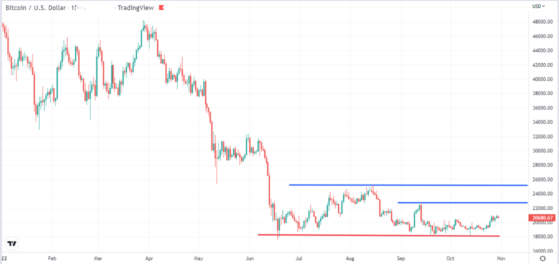 Miscarea din piata crypto a fost corelata cu evolutia pozitiva din pietele financiare de actiuni, care au avut cea mai buna saptamana din luna august incoace, dupa ce au aparut voci din randul analistilor financiari care sustin ca bancile centrale, si in speciala Banca Centrala SUA – FED, ar putea incetini ritmul de cresteri a dobanzilor de politica monetara in prima parte a anului viitor. Aceste zvonuri au adus un impuls pozitiv in randul investitorilor si am vazut cumparari pe majoritatea activelor investitionale – actiuni, obligatiuni, crypto etc.