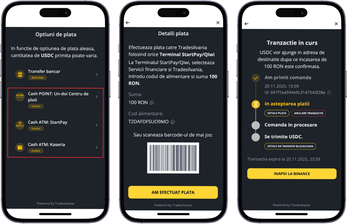 Cum sa cumperi crypto cu RON cash pe Binance prin Tradesilvania RAMP