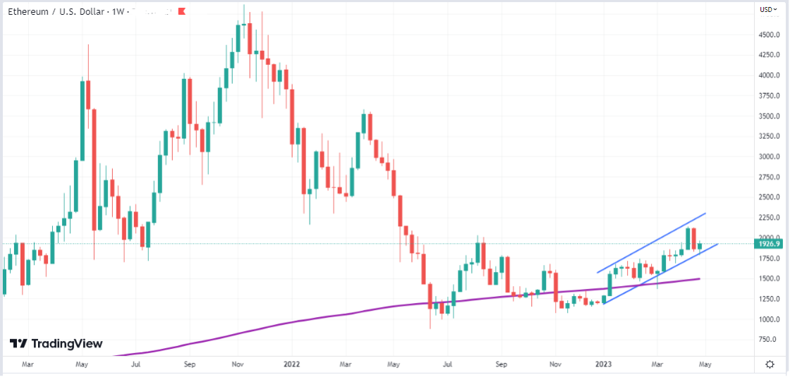 ETH had a relatively stable week and the price rose slightly, returning above $1,900 in the last days of April.