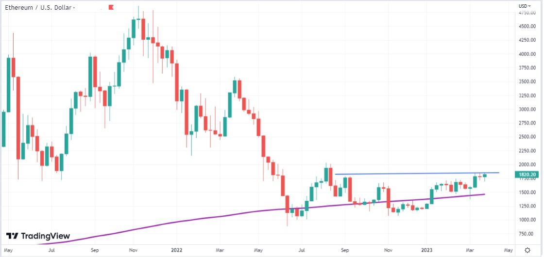 However, buyers saw this correction as an opportunity to accumulate and the price rose again. As a result, the Ethereum network token ended the first quarter of 2023 around the value of $1,800. Compared to the beginning of the year, ETH has had an ascent of approximately 50%.